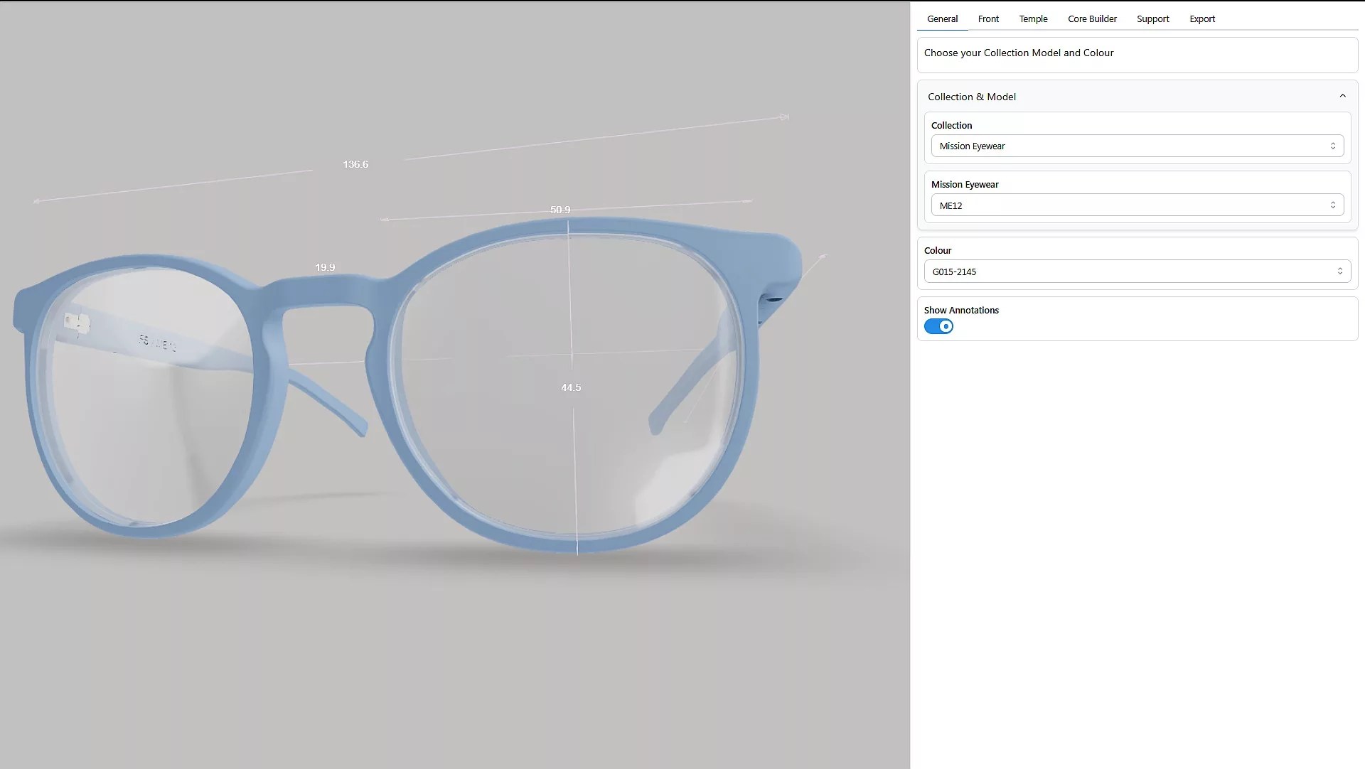 This tool allows you to configure eyewear models precisely to your customer’s needs and download printable STL files instantly.